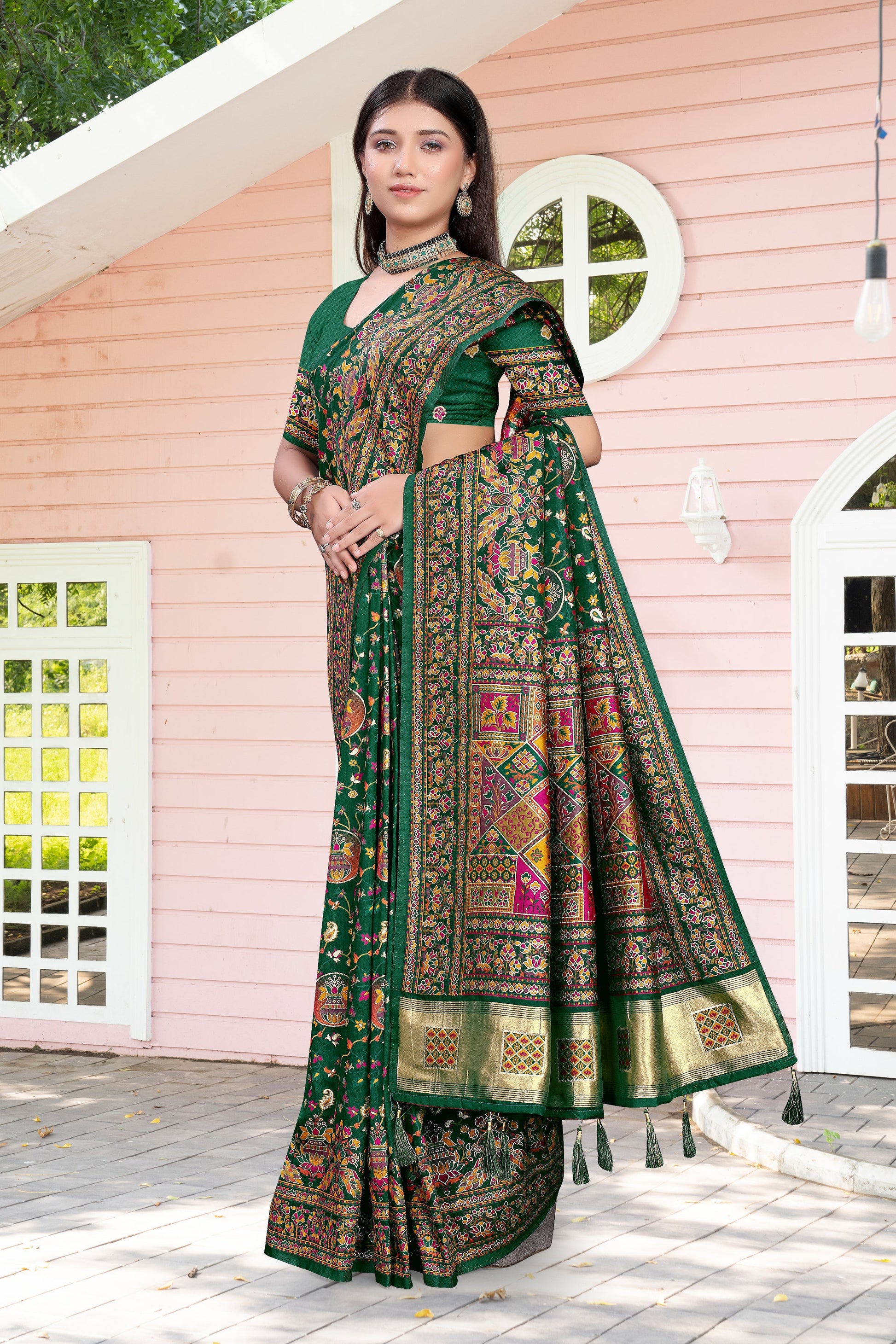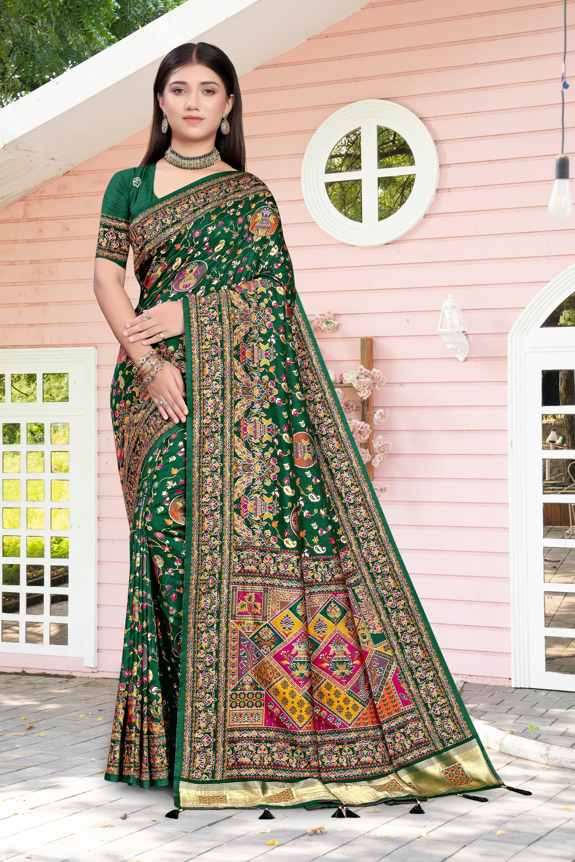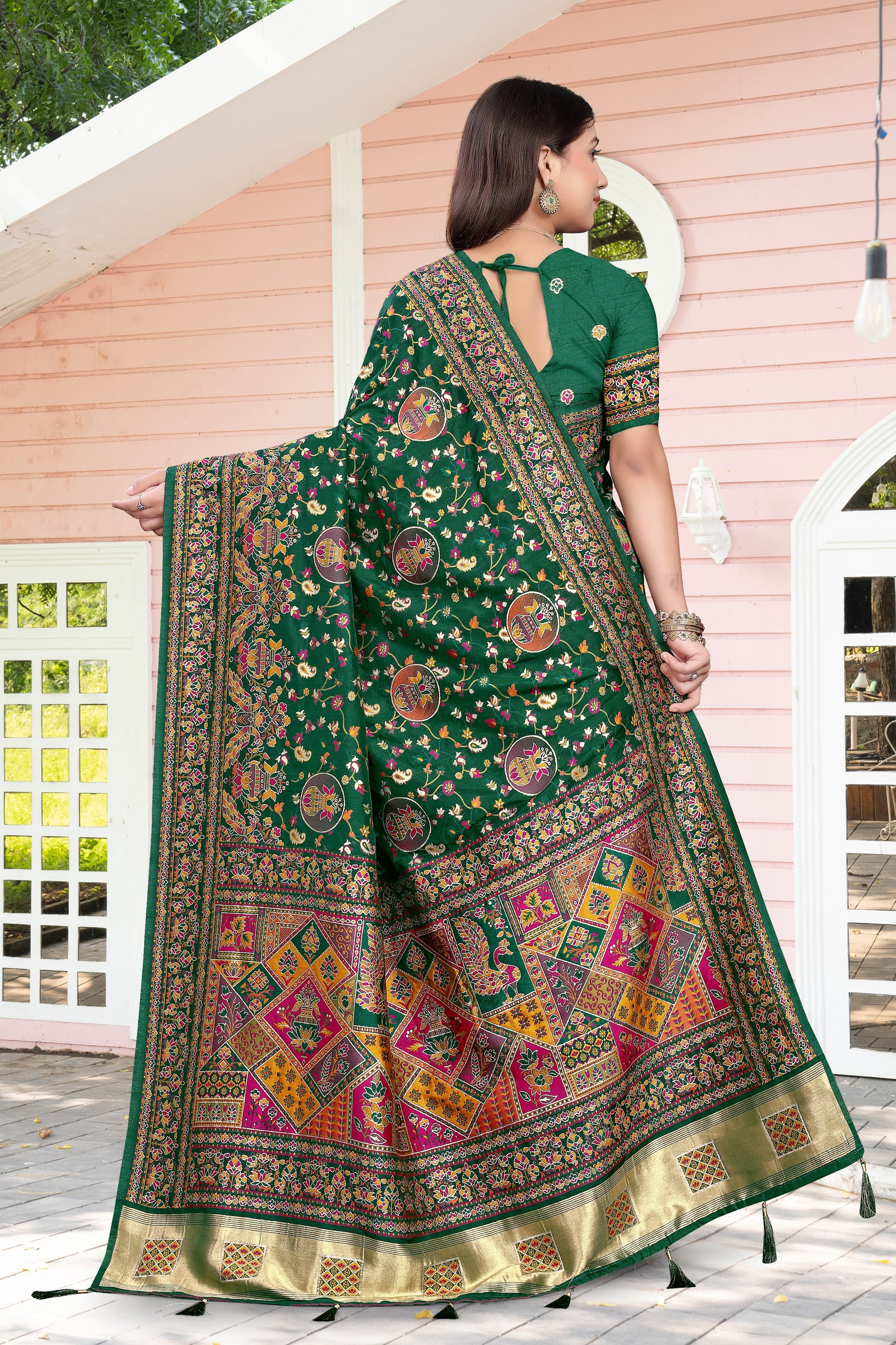 Royal Charm in Silk – Dark Green Saree with Patola-Style Grandeur